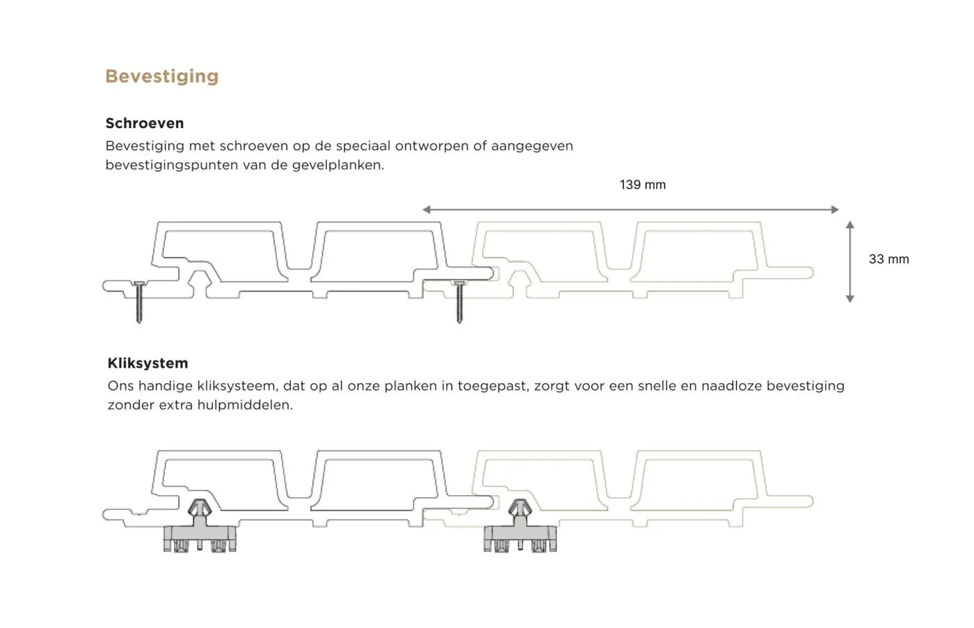Dit betekend dat er per plank, om de 45cm een schroef of kliksysteem geplaatst moet worden.