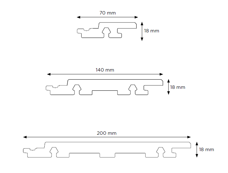 De Harvest planken zijn leverbaar in een breedte van 7cm, 14cm en 20cm - Weerbestendig & kleurvast