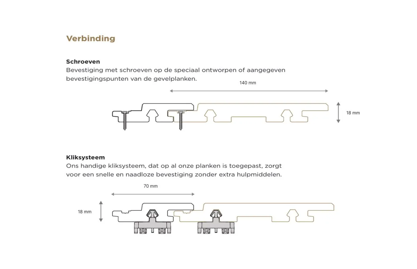 Dit betekend dat er per plank, om de 45cm een schroef of kliksysteem geplaatst moet worden.