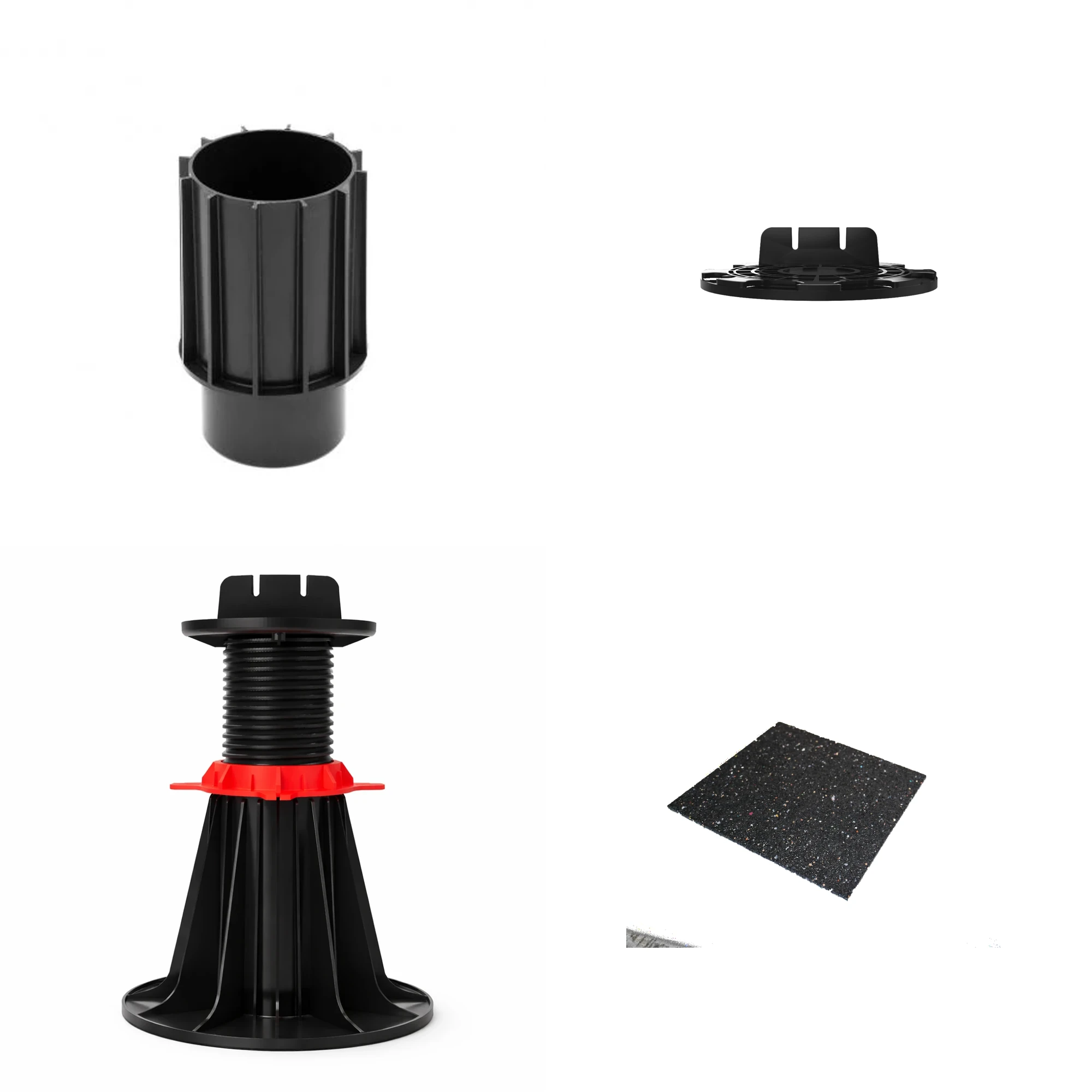 De terrasdragers maken het mogelijk om balken eenvoudig waterpas te stellen, zelfs op ongelijke of hellende ondergronden. Ze zorgen voor een stevige basis en voorkomen direct contact tussen balken en de ondergrond, wat de levensduur van het terras aanzienlijk verlengt. In combinatie met de isolatiepads wordt trillings- en geluidsdemping verbeterd en wordt vochtopname effectief beperkt.