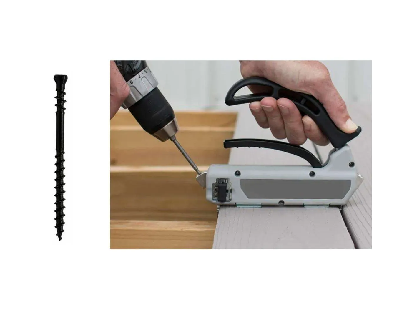 De tool is geschikt voor standaard Kerama terrasplanken en maakt het mogelijk om efficiënt te werken zonder zichtbare schroeven aan de bovenzijde. Dit verbetert niet alleen de uitstraling van het terras, maar ook de levensduur van de planken doordat de bevestiging correct en consistent wordt uitgevoerd.